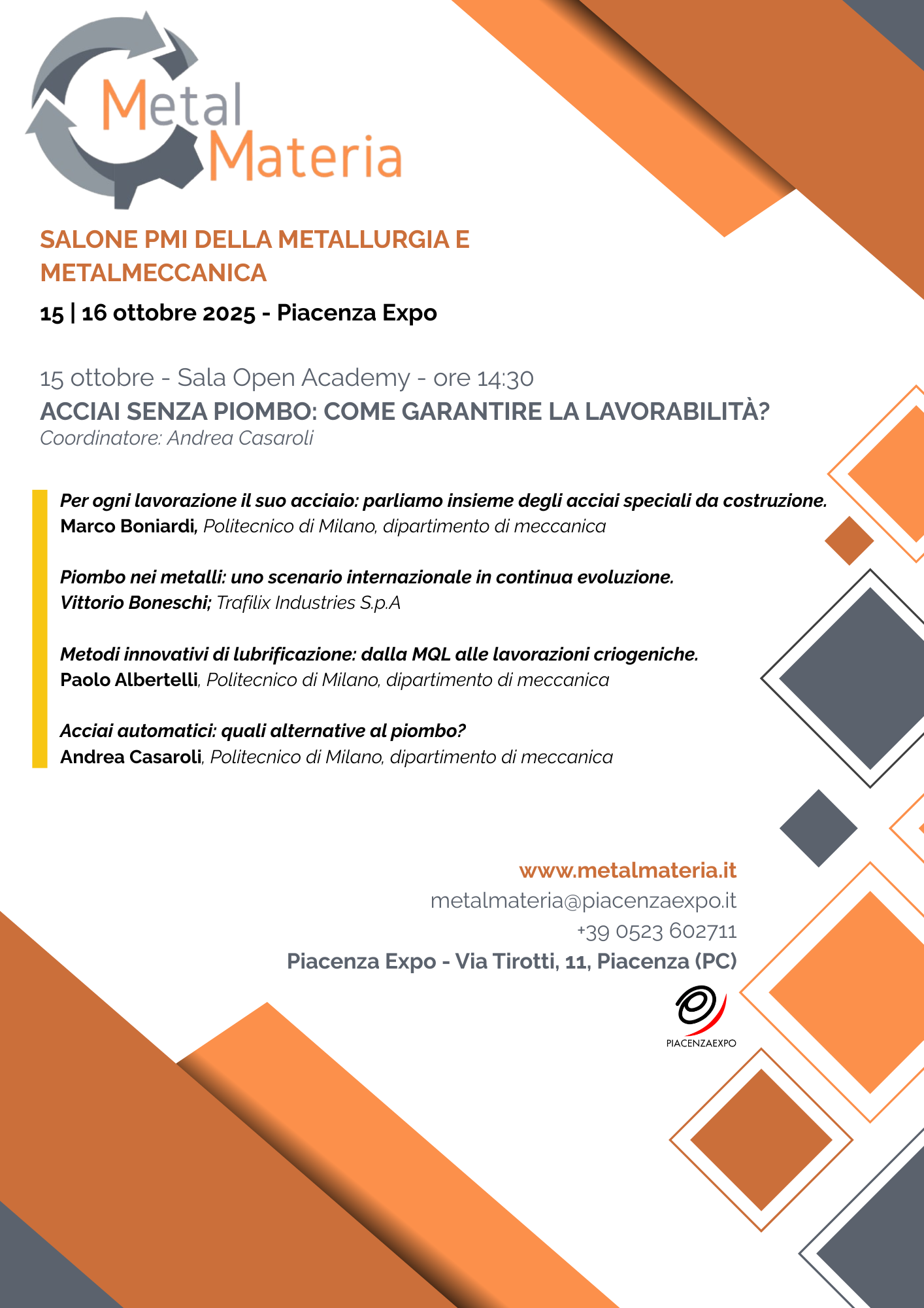 DENTRO LA MATERIA – ACCIAI SENZA PIOMBO: COME GARANTIRE LA LAVORABILITA’?